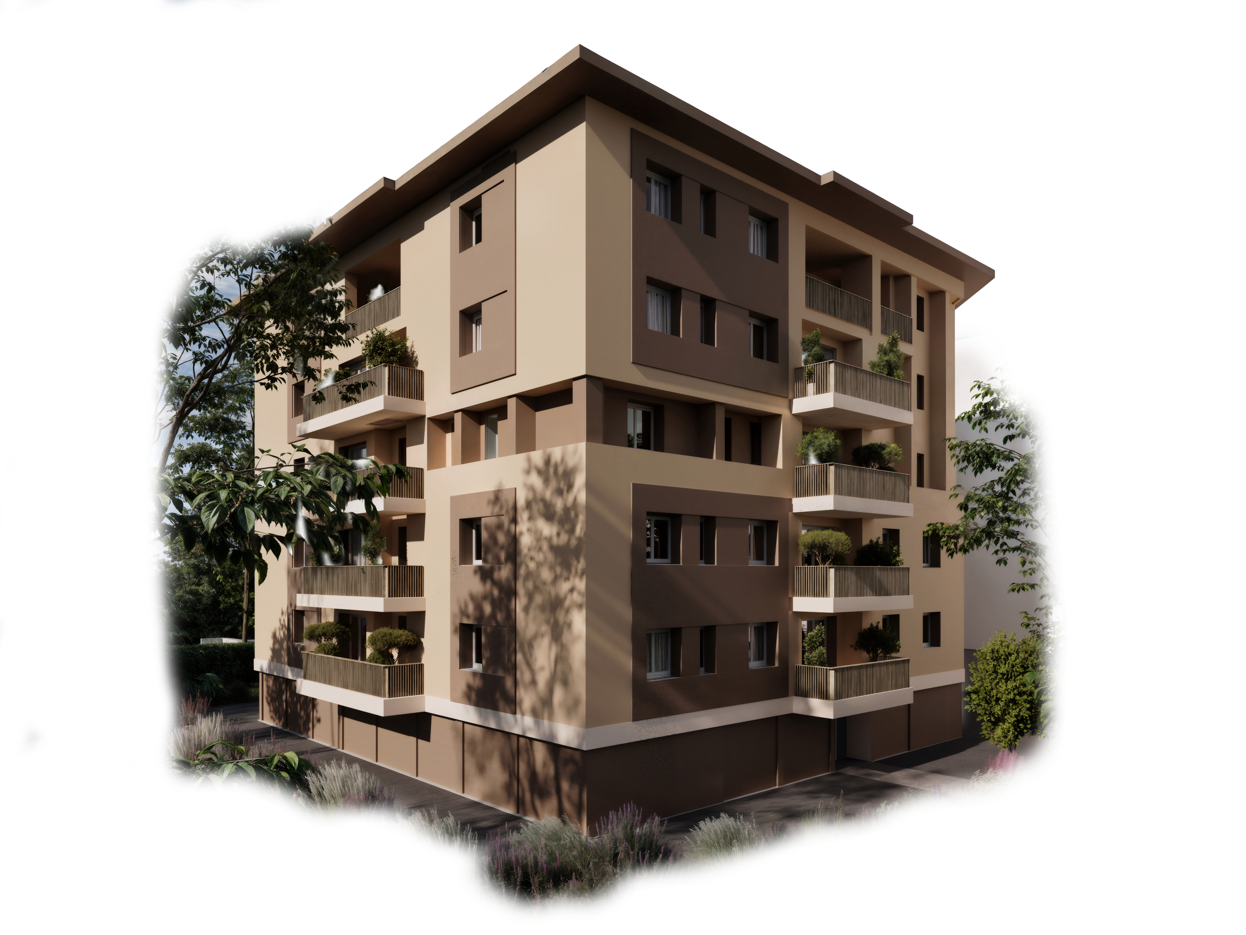 Realizzazione di 1 palazzina di 24 appartamenti di varie tipologie e metrature con cantine, autorimesse e posti auto.